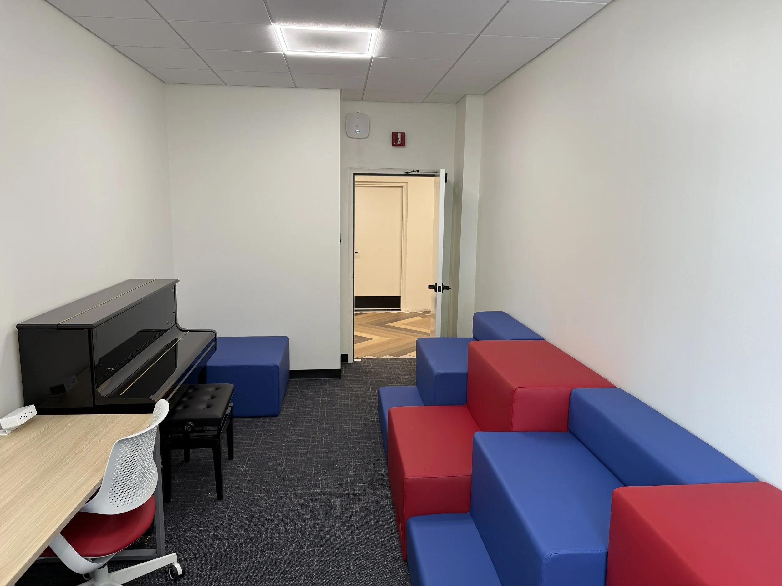 Each studio is fully soundproofed, not to contain, but to protect — to give every student their own quiet universe to experiment, to stumble, to master their craft without restraint. Here, freedom meets focus. The design ensures privacy, not isolation — a gentle invitation to lose yourself in the music, knowing the outside world will wait.